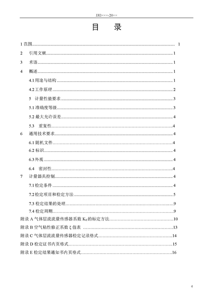 《氣體層流流量傳感器檢定規程》JJG7 36- 20XX