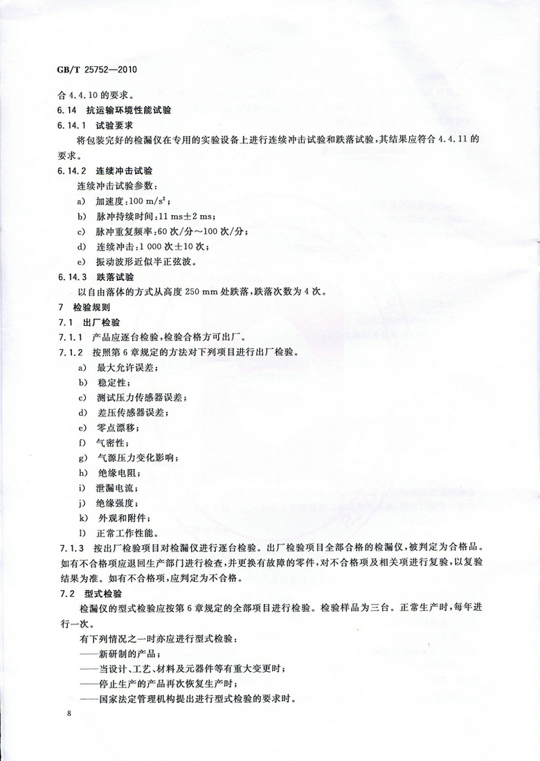 《差壓式氣密檢漏儀》GB/T 25752—2010