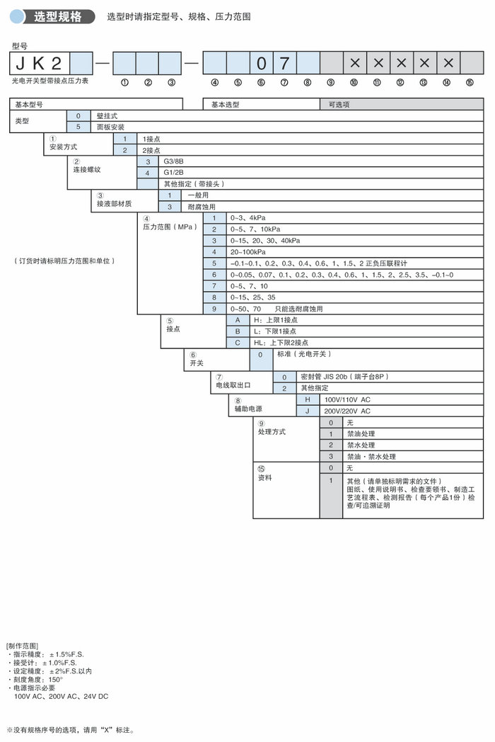 本產(chǎn)品在壓力表中內(nèi)置光電開(kāi)關(guān),可用于控制大容量開(kāi)關(guān)的報(bào)警裝置