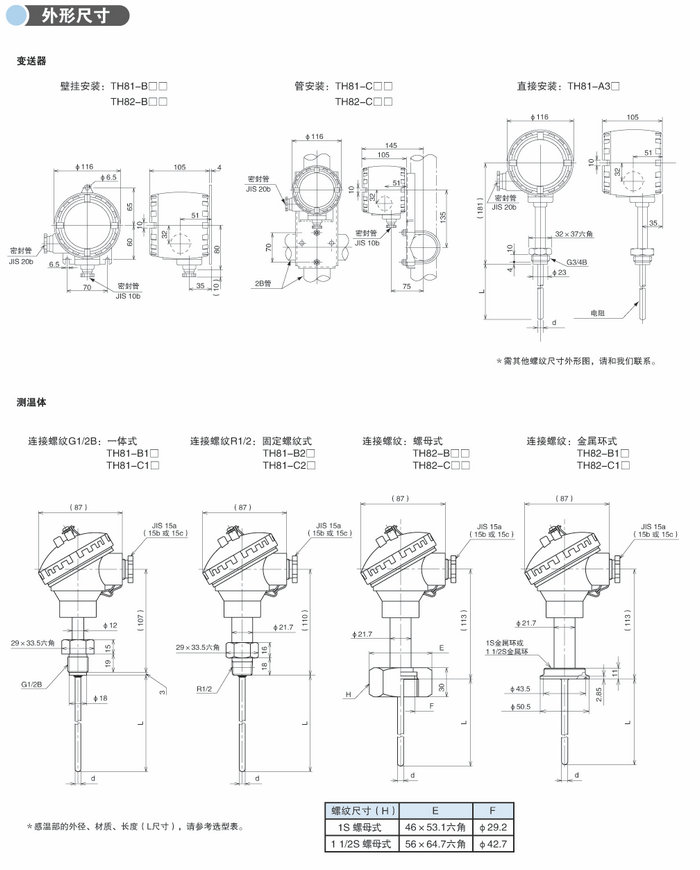 溫度計的安裝方式,傳輸方式和電源方式可選;