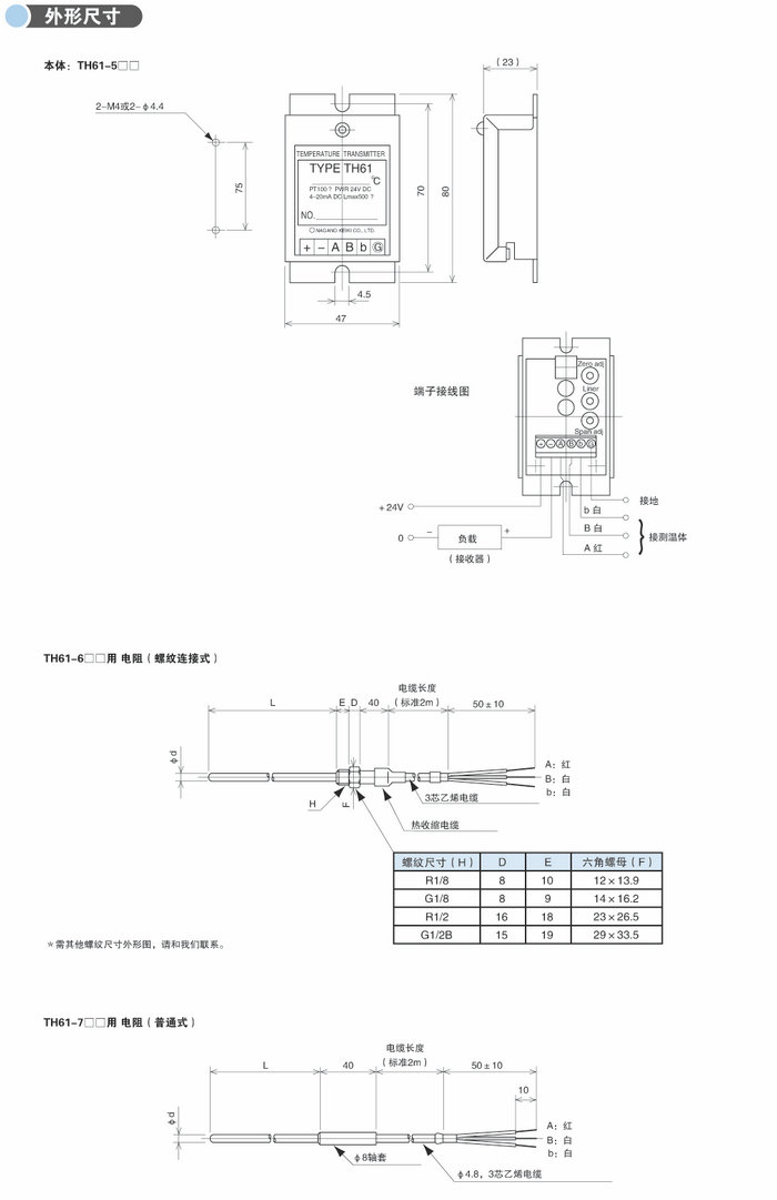 感溫部由鉑電阻構成,且感溫部與變送部分分開。適用于測量室溫、油溫、空調等溫度。