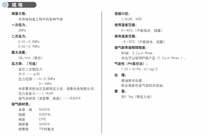 為各種半導體供給系統及制造設備專門開發制造的小型調壓閥。