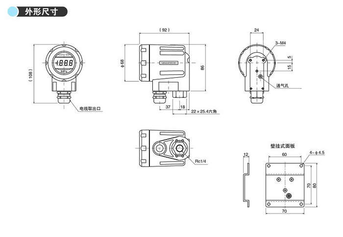 本產品的感應元件采用半導體應變片,是帶有LED顯示的2線式壓力變送器,廣泛用于現場壓力監控。