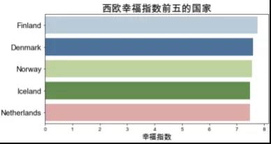 我們發(fā)現(xiàn)幸福指數(shù)很高的這些國家都為發(fā)達國家,有可能是因為這些國家的人口基數(shù)少,發(fā)展精工業(yè),社會制度以及良好的醫(yī)療保障等等因素。而一些發(fā)展中國家,例如中國,印度等國家處于中游水平,而幸福指數(shù)最低的幾個國家大部分都集中在非洲地區(qū),可能是因為,非洲地區(qū)的經(jīng)濟效益不好,戰(zhàn)亂等因素導致的。下面我們研究各個指標對幸福指數(shù)的影響,看看什么指標對幸福指數(shù)是影響最大的,換句話說,什么能使人民感到幸福?