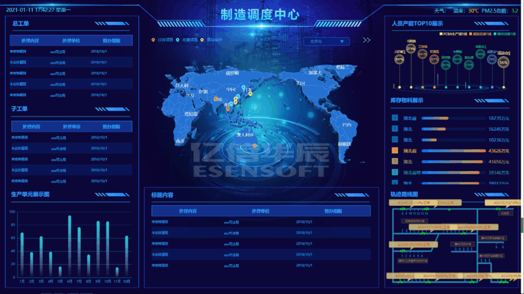 輔助圖表通常圍繞視覺中心的四周,起到錦上添花的作用,用來呈現(xiàn)次要指標(biāo),從各種維度進(jìn)一步細(xì)化核心指標(biāo)。時(shí)間類組件 時(shí)鐘